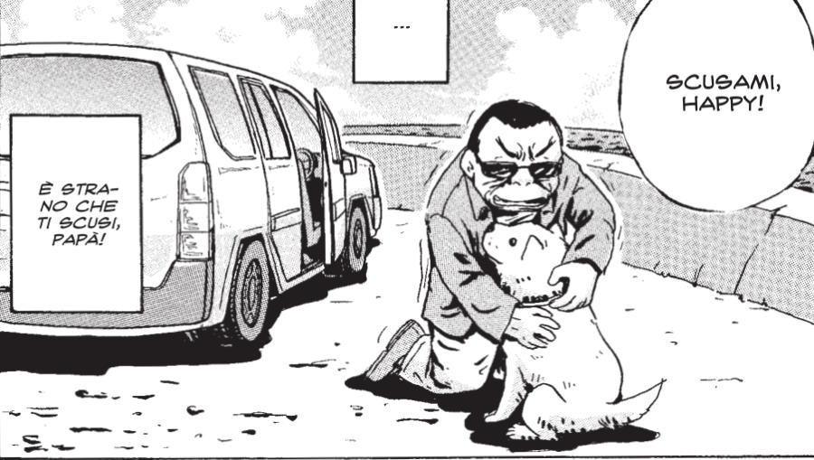 Il manga è diviso in due atti, ognuno con un viaggio che ha un peso e un significato diversi. Il primo è un viaggio nel presente: il padre e Happy percorrono strade reali e metaforiche, esplorando non tanto un luogo quanto il senso del loro legame, giorno dopo giorno. È un’avventura condivisa, fatta di silenzi, piccole scoperte e una vicinanza sempre più profonda.